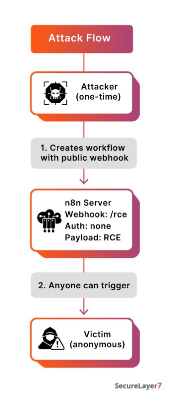 The attack requires minimal effort. An attacker creates a workflow with a publicly accessible webhook that has no authentication enabled. By adding a single line of JavaScript using destructuring syntax, the workflow can be abused to execute system-level commands. Once exposed, anyone on the internet can trigger the webhook and run commands remotely.