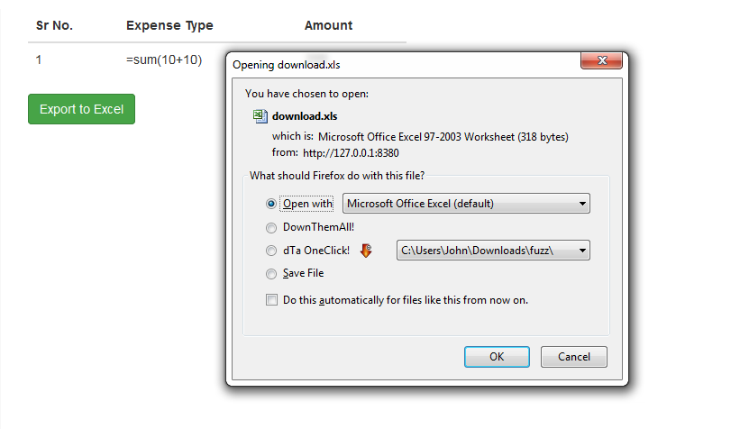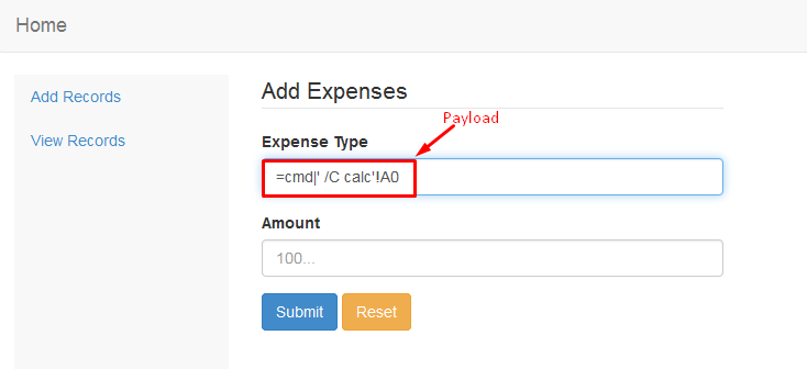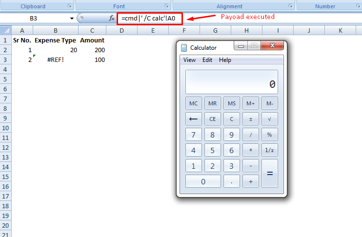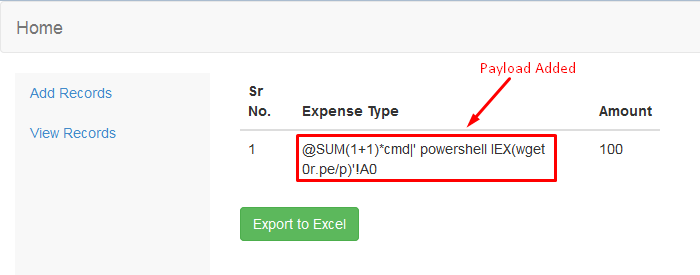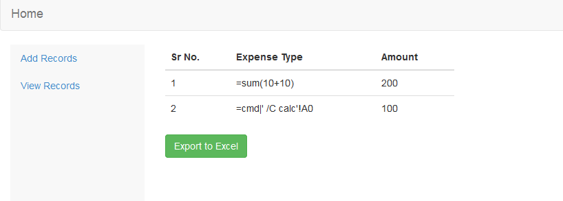 As you can see in the above screenshots, our payload adds to the input fields. Now, once we export this record to an excel file, our payload informs the program to run an application called cmd.exe with the command /C calc which executes calc.exe from the command line.