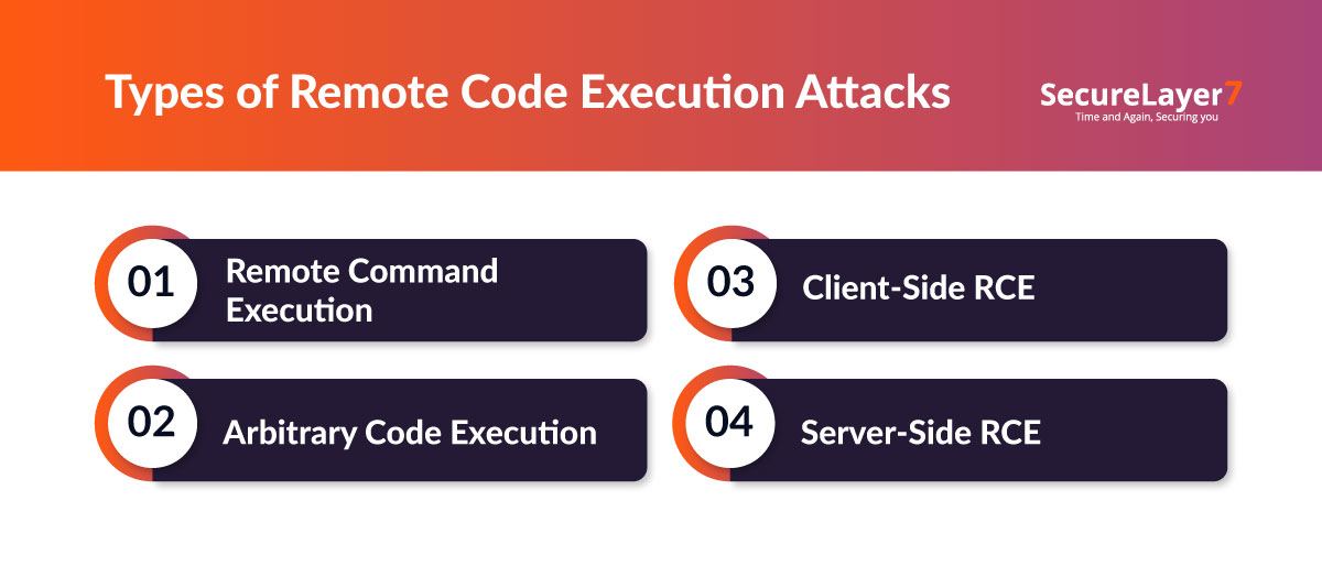 - Remote Code Execution lets an attacker run code. They can upload scripts, exploit memory flaws, or install malware.