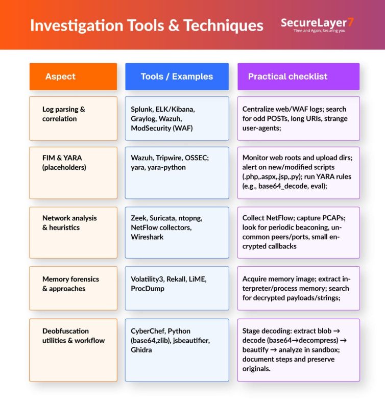 - Correlate web server logs with EDR ( Endpoint Detection And Response)alerts for process injection, suspicious PowerShell use, or lateral movement.